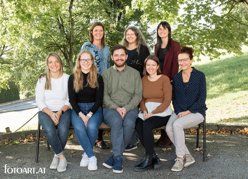 Sitzend: Petra Buttinger, Anna Gast, Lukas Ferent, Stefanie Kaiser, Michaela Müller
