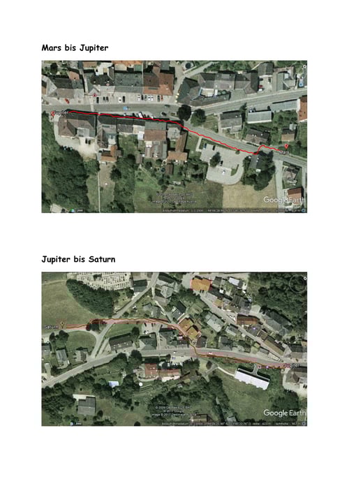 Der Start mit der "Sonne" befindet sich bei der Volksschule und mit „Neptun“ auf dem Spielplatz der Schanze ist das Ziel erreicht.