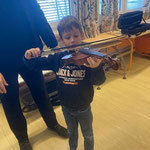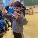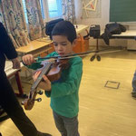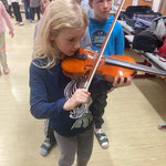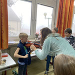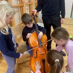Anschließend durften die Kinder in einem "Streichinstrumente-Karussell" verschiedene Streichinstrument selbst ausprobieren.